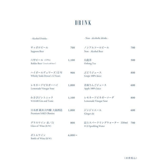 17:00 - 21:00(L.O. 料理20:00 ドリンク20:30)