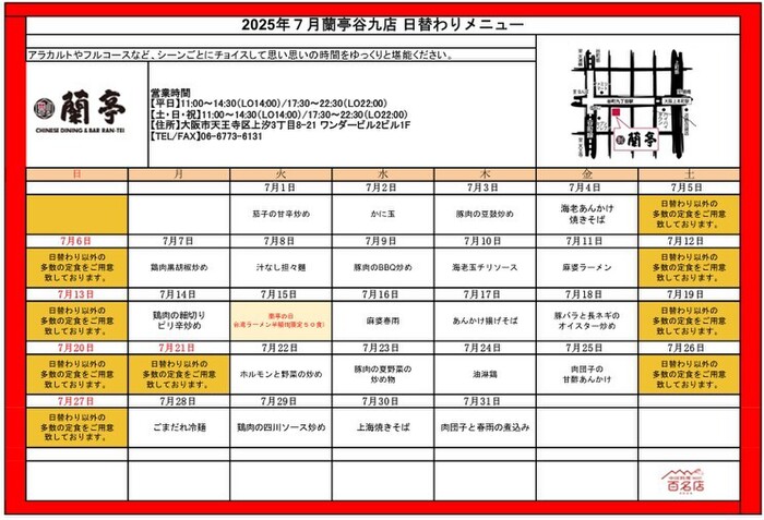 ※プレミアム食事券使えます‼谷町九丁目駅5番出口すぐにある人気台湾料理店【蘭亭】。名物「蘭亭特製酢豚」は大人気で、約9割のお客様にご注文いただいております!また当店の人気メニューを集めたお得なコースもご用意。各コース飲み放題追加も可能ですので、各種ご宴会にいかがでしょうか◎お仕事帰りの方に嬉しい、夕方限定のお得な「お疲れ様セット」もございますので、お一人様もふらっとお気軽にお立ち寄りください!
