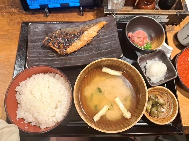 以平價又有質素嘅定食聞名,主打各款燒魚料理,深受上班族同旅客歡迎。早上開始營業就有各款經典日本家庭風定食,人氣早餐「朝燒三文魚定食」,三文魚同白飯永遠係最穩陣嘅組合。另外可以加錢追加小菜,例如四季豆芝麻拌菜、炒蘿蔔絲等,令整個早餐更豐富。