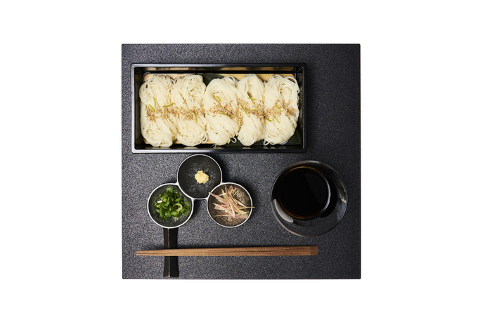 日比谷OKUROJI内に居を構える【そうめんそそそ〜その先へ〜】は、そうめんの新たな楽しみ方を提案する専門店。こだわりのそうめんは、小豆島で二日間かけて手延べされた強いコシが特徴の「島の光」のうち、国産小麦を使用した"黒帯"です。麺本来の持ち味を存分に満喫できる『つけそうめん』をはじめとした和風味はもちろん、パスタ風やエスニックアジア風などのオリジナリティ溢れる創作スタイルで供されます。中で...