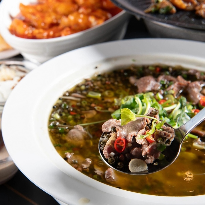 細部にまでこだわった創作中華をお愉しみいただける【享京味融合菜】。牛タン・青山椒のうえに熱々の油をかけた「四川風青山椒」や、手間暇かけて仕上げる「ライチエビ団子」などが人気で、自慢の料理を堪能できるコースは3種類ご用意しました。飲み放題もお選びいただけで、各種ご宴会におすすめ◎店内は異国情緒溢れるシックな空間で、窓からは美しい夜景をご覧いただけます。デートや女子会など幅広いシーンにお越しください。