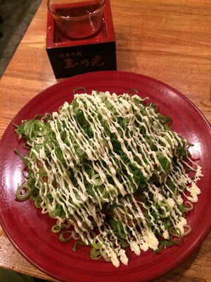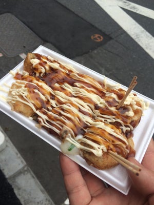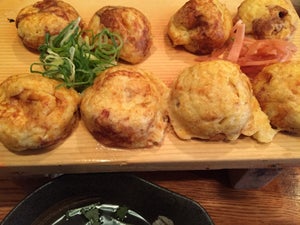 【巣鴨 はち八】主打的明石燒是另類的章魚燒,在它烤製的同時會注入湯汁,比起常見的章魚燒更軟嫩且更著重原汁原味,送上客人面前時會附上一碗暖湯,客人可以選擇將明石燒泡在湯中進食。