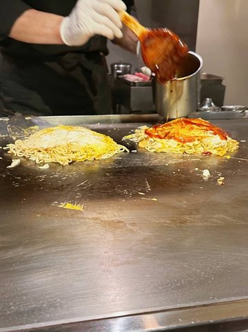 之前去廣島試完廣島燒覺得幾好食,所以呢次見到呢間comment都唔差既廣島燒就黎回味下😋。無book位都好彩坐到最後2個吉位😂,坐正bar枱望住師傅整👀。香港好似無咩廣島燒食,簡單介紹下:廣島燒比較有層次,逐次加配料落去鐵板到煎,最後仲會加個麵,食落口感豐富又有層次啲。相反,大阪燒就係將所有配料撈勻倒落鐵板,喺屋企都好易整😝。🔅広島焼デラックス (1,820円)🔅肉玉そば (1,160円)除左deluxe多左海鮮,基本上既配料都差唔多。有滿滿既椰菜絲、芽菜、天婦羅碎、豚肉同煎蛋,超足料🥺。💬可能少見外國客,店員比較cool 😂。食物唔錯,但建議2個人黎既可以share一份廣島燒再加其他一品料理會無咁齋🤣。…查看更多