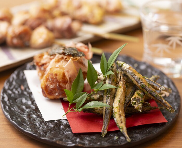 今井屋の料理人は、約100項目にもおよぶ審査を全てクリアし、素材の美味しさを最大限に引き出す焼き方を身につけた「焼方人」だけがお客様にお出しする焼き鳥を焼くことができ、毎日「焼方人」が一本一本魂を込め、「一串入魂」の精神で焼き上げています。その他、旬の素材を使った料理、全国の銘酒を取り揃えております。白木を基調にどこか懐かしさを感じる店内は、都会の喧騒を忘れさせる落ち着いた上質な和の空間です。