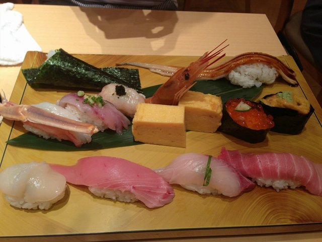 ,有齊拖羅、白子、海膽、蝦、蟹等。壽司外表震撼,不過食落就覺得質素遙不可及之前喺銀座分店食過嘅咁正囉