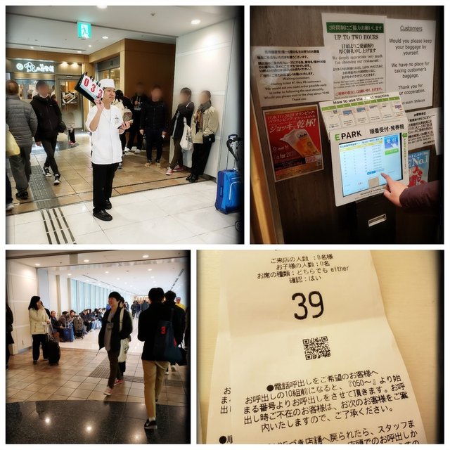 。門外貼出日英雙語告示,指繁忙時間限定用餐時間為兩小時,及店內並冇足夠空間擺放行李。亦展出附有彩圖嘅推介及節令菜式,方便貴客候座時諗定食乜。聽到哥哥仔話分兩張四人枱會快啲有位喎,當然係立即接納啦