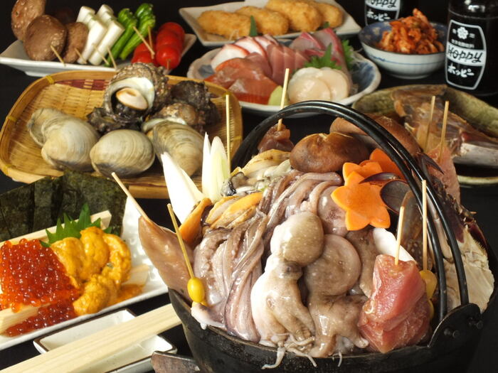 漁港近くにある漁師小屋のような雰囲気の【浜印水産】。市場より仕入れる新鮮な魚介の浜焼き・海鮮BBQが自慢です!水槽を設けており、活きた海鮮のご提供も◎日替わりでさまざまな素材を味わえるのも魅力です。冬季限定で海の幸をたっぷりと使った鍋も楽しめます。ドリンクを豊富に取り揃えており、サワー・ハイボールはメガジョッキへの変更OK。お通しはなく価格もリーズナブルで、気軽に立ち寄れるお店を目指しております♪