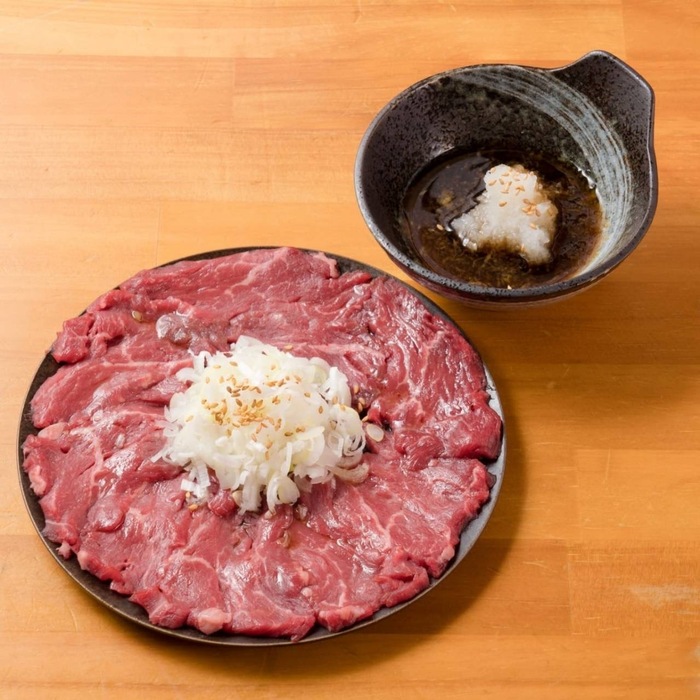 当店の【特上カルビ】は厳選した黒毛和牛を塊から手切りで一枚ずつカットし、一番おいしい状態でご提供いたします。