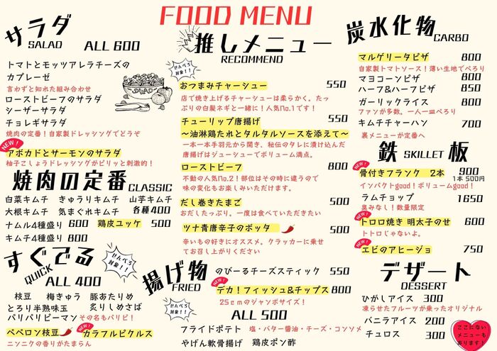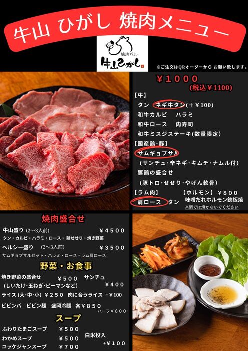 厳選和牛の焼肉と豊富なバルメニューをお得に楽しめる【牛山ひがし】。がっつりお肉を食べたい方はもちろん、自家製ローストビーフやチャーシューなどのバル料理だけをちょっとつまみたい方など、様々な楽しみ方ができるのが魅力です。お肉は鶏肉や豚肉などもすべて国産肉を使用しており、驚きの1,100円均一でご提供!お酒も充実のラインナップです◎サク飲みからご宴会まで使えるゆったりとした空間で寛ぎのひと時をどうぞ♪