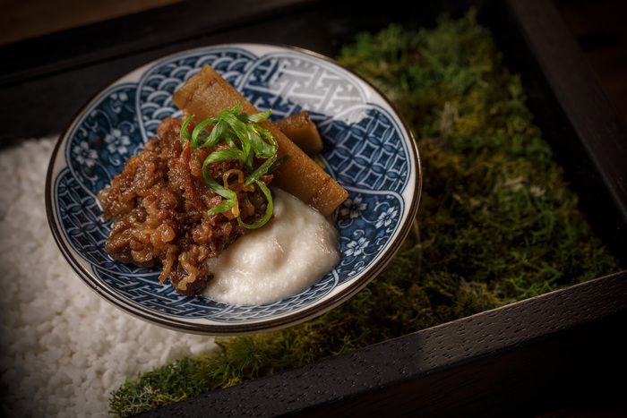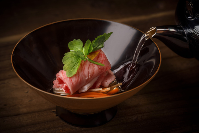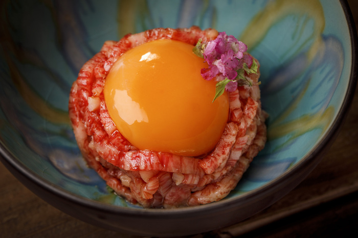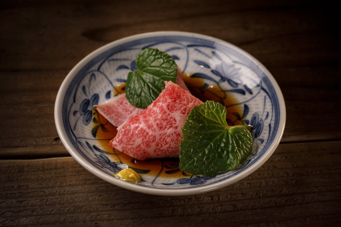 自慢の「純生 牛肉刺し」「雲丹肉の手巻き」を自家製秘伝の醤油タレで!