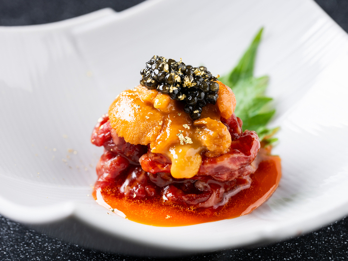 神戸牛【但馬牛】をメインに松阪牛を加えた最高級A5ランクの和牛を、様々な存分に味わえる焼肉屋。専属焼き師が焼き上げたお肉を一番美味しいタイミングで召し上がることが出来るのは最大の魅力。旬の野菜やその他食材の仕入れにも勿論こだわり、和の要素を掛け合わせた逸品もご用意しております。ライブ感溢れるカウンター席は、料理を五感で愉しめる特等席。