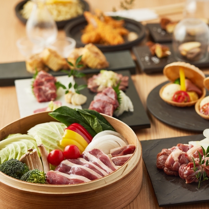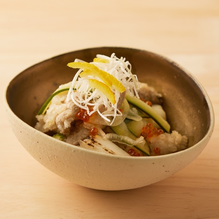 美酒場=うまさかばと表現するほど美味にこだわった看板食材が鴨。生産者の手により大切に育てられた京都・丹波の地で育まれた「京鴨」。この鴨肉を、昔から相性が良いとされ、“鴨が葱をしょってくる”とまで言われる葱と合わせた「鴨葱焼き」と「鴨しゃぶ」に仕立てました。