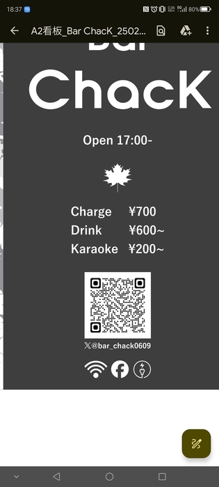 Bar Chack (東京/関東) 網址: https://s.openrice.com/UbbSB03Xt0D00 地址: 東京/関東中野東京都中野區中野3-35-5 電話: +81 03-6382-4343