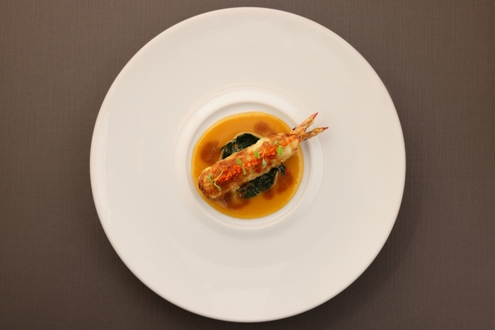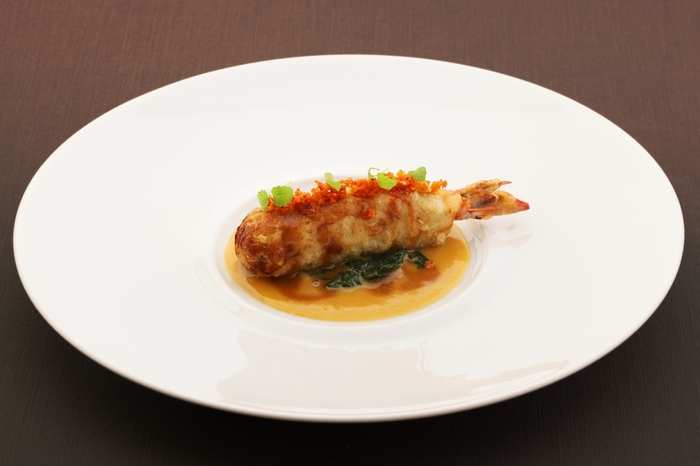 喺一間出名嘅餐廳做過炒菜嘅廚師和田根治,會帶出精心挑選嘅食材嘅鮮味,然後送上菜式,配上濃縮味道同香氣嘅醬汁。