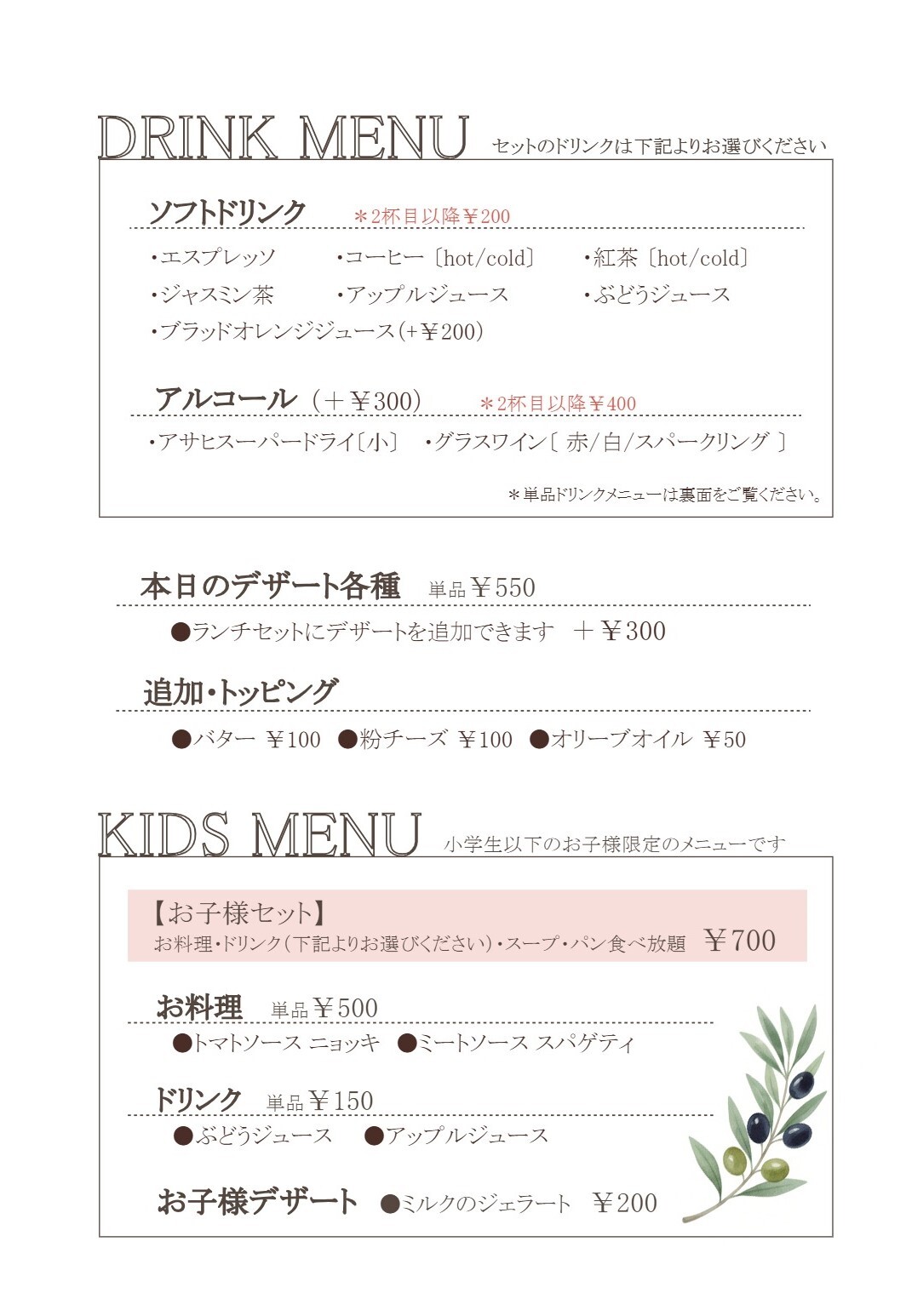 英文/中文餐牌