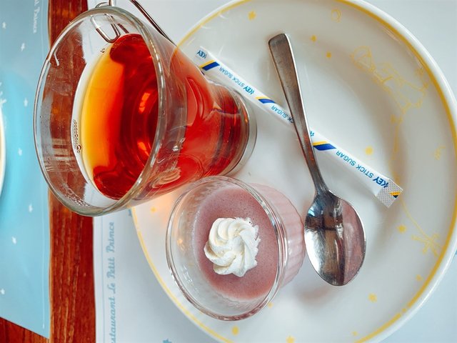 個甜品係一個藍莓味或者草莓味嘅啫喱,好細一個,基本上兩至三啖就可以食晒,而且味道都係完全普通,主要係為咗完整一個聲入面應該有嘅嘢嘅而存在嘅