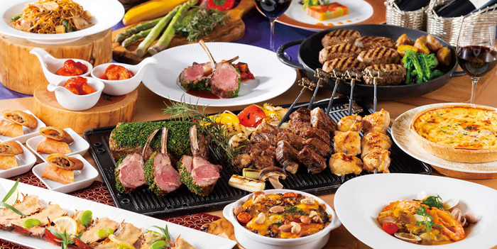 都庁駅前すぐ、京王プラザホテル内にある【スーパーブッフェ】ランチ・ディナーとも和洋中バリエーション豊かな料理をご用意。出来立てを楽しめる臨場感溢れるライブキッチンではお好きなお料理をお好きなだけお取りいただけます。