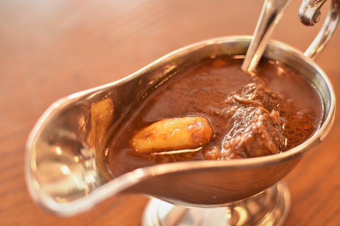 1973年に東京・秋葉原にて創業した【ベンガル】は、2018年3月より外神田3丁目に移転。メインのカレールウは、創業当時から味を変えずにご提供しております。オススメは酸味と苦味がクセになる「ビーフ角切りカレー」をはじめ、この度メニューに加わった「こく旨焼きビーフカレー」や人気メニューのあいがけ「よくばりダブルカレー」。お得なディナーセットもございますので、夜にもお気軽にお立ち寄りくださいね◎